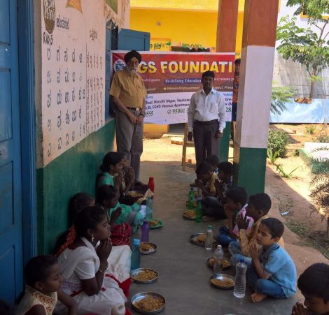 Students taking Lunch at GLPS Venkatala, Bangalore